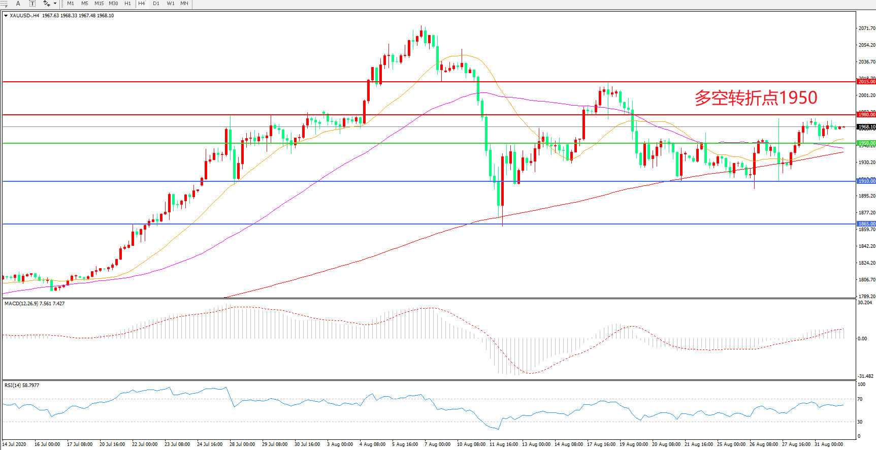 多空转折点:1950.00