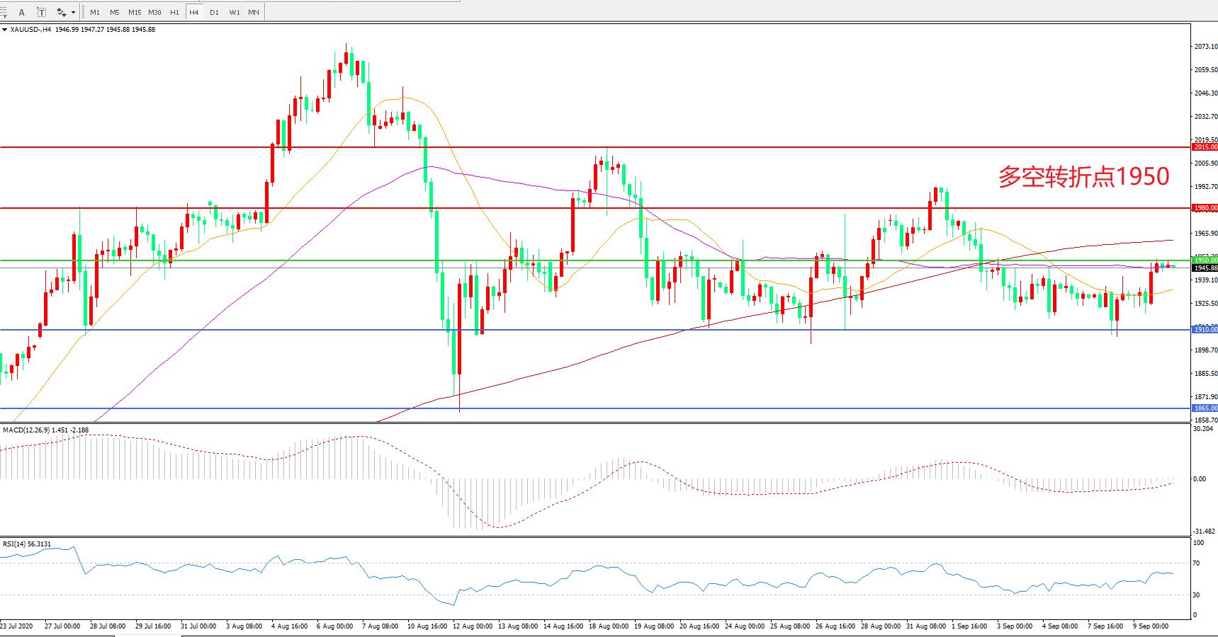 备选策略:  在1950.00之上看涨,目标1980.00   2015.00