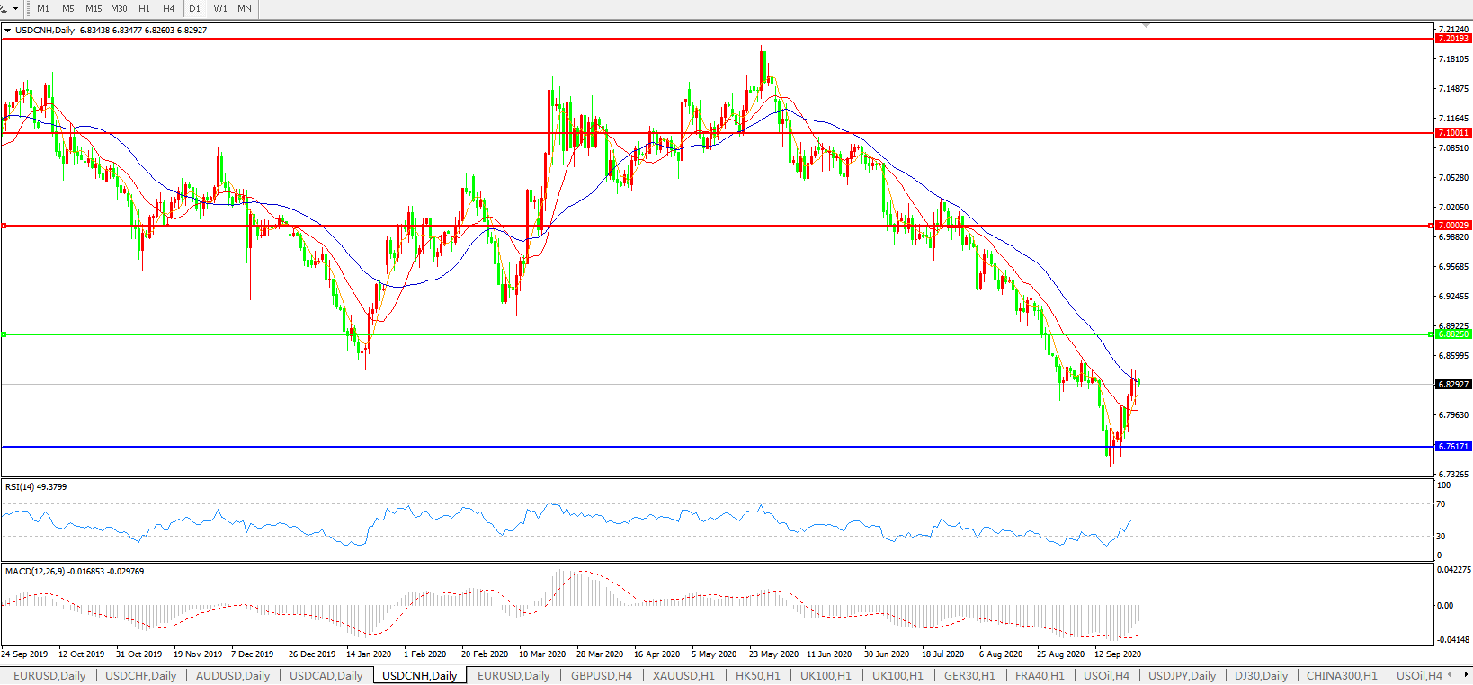 美元兑人民币USDCNH    日线图:
