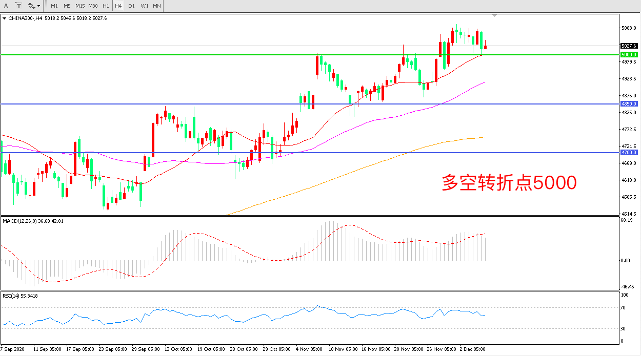 交易策略:在5000.00之上看涨,目标5150.00 5300.00