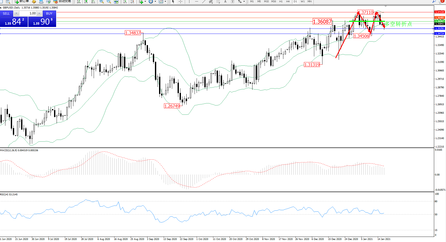 交易策略:1.36087下方看跌,目标1.35292、1.34724