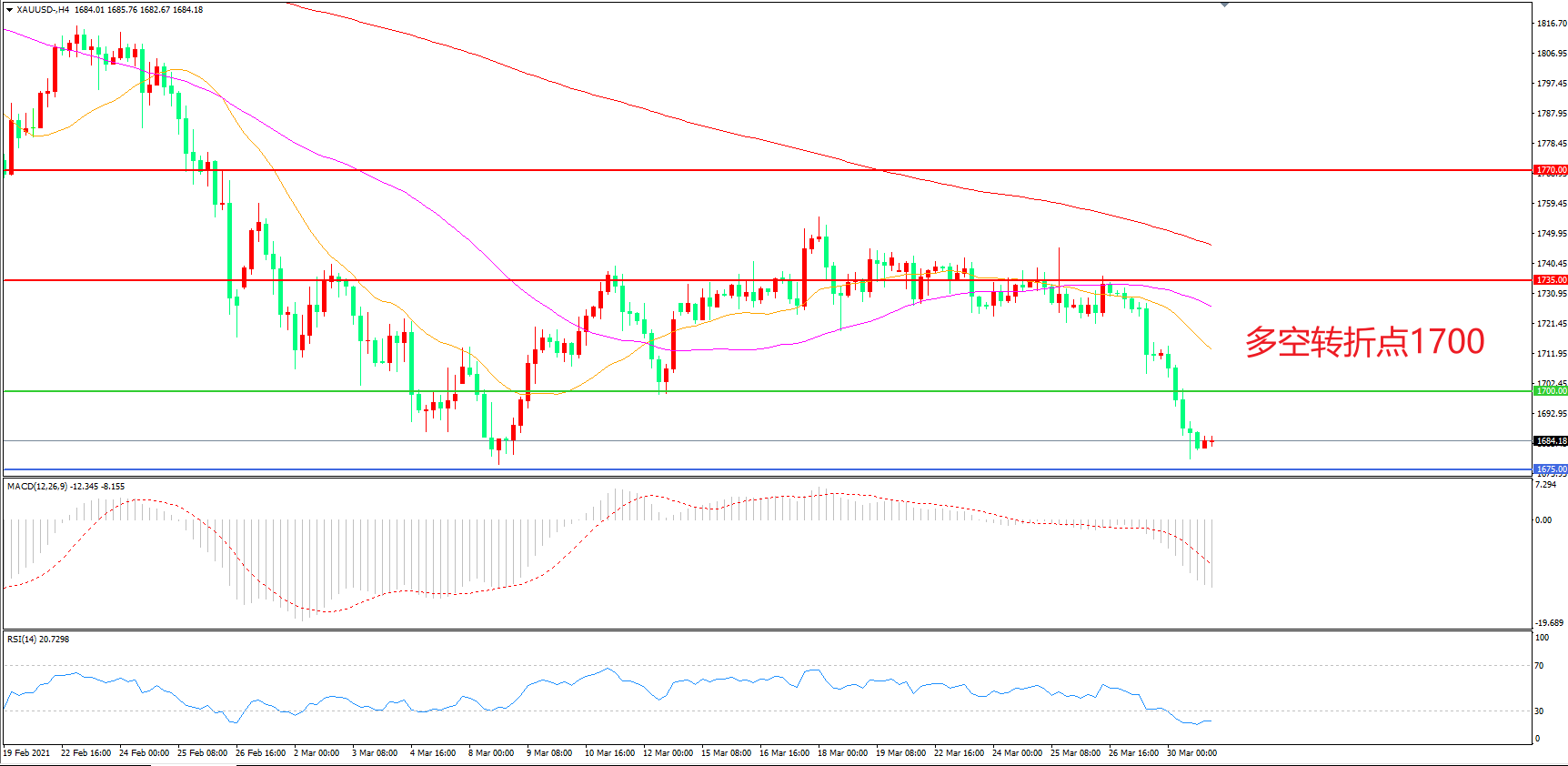 交易策略:在1700.00之下看跌,目标1670.00    1630.00