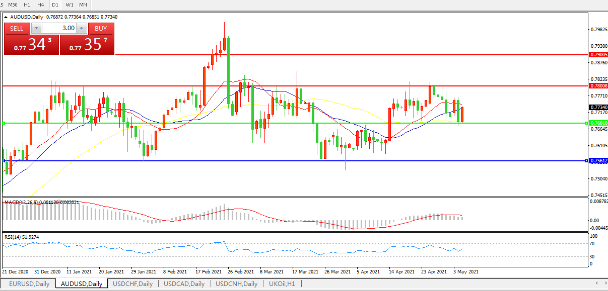 交易策略:0.7680上方看涨,目标0.7800、0.7900