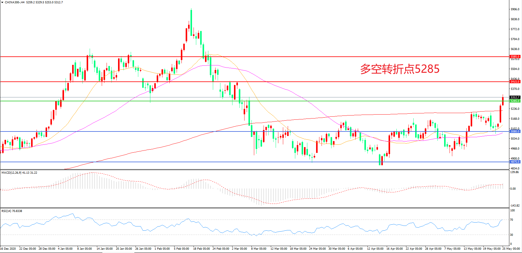 多空转折点:5285.00