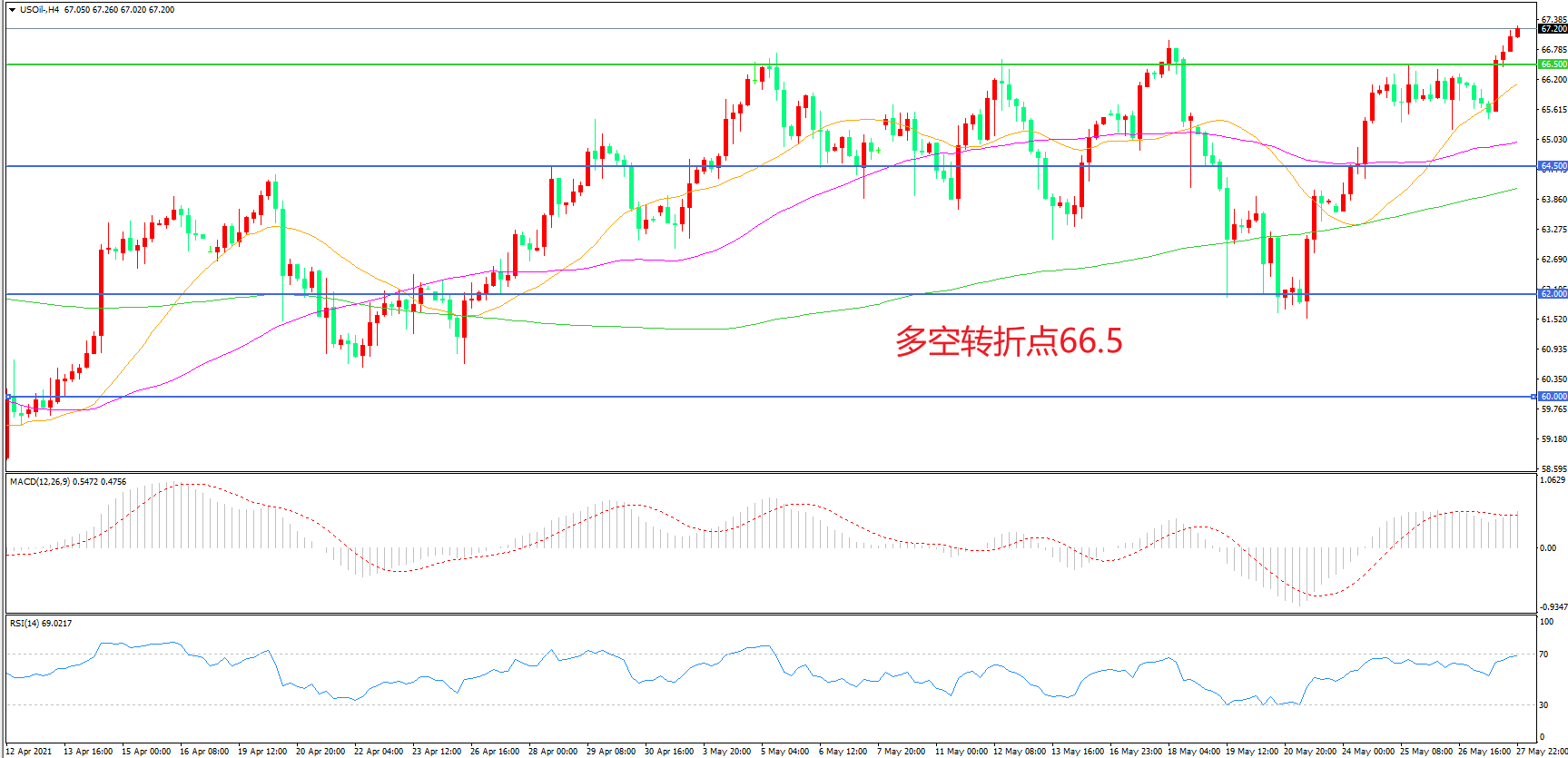 交易策略:在66.50之上看涨,目标69.00 72.00
