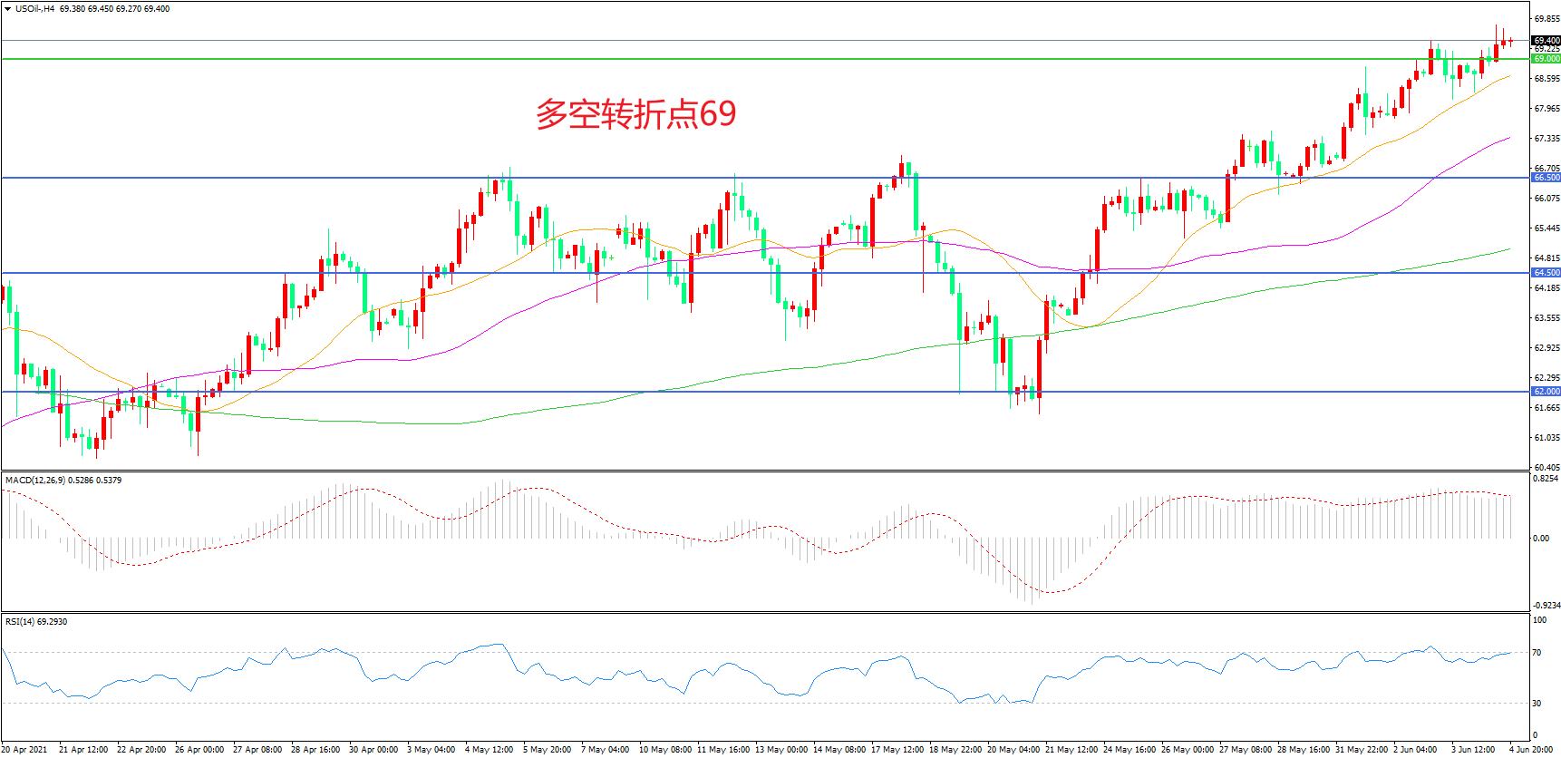 多空转折点:69.00