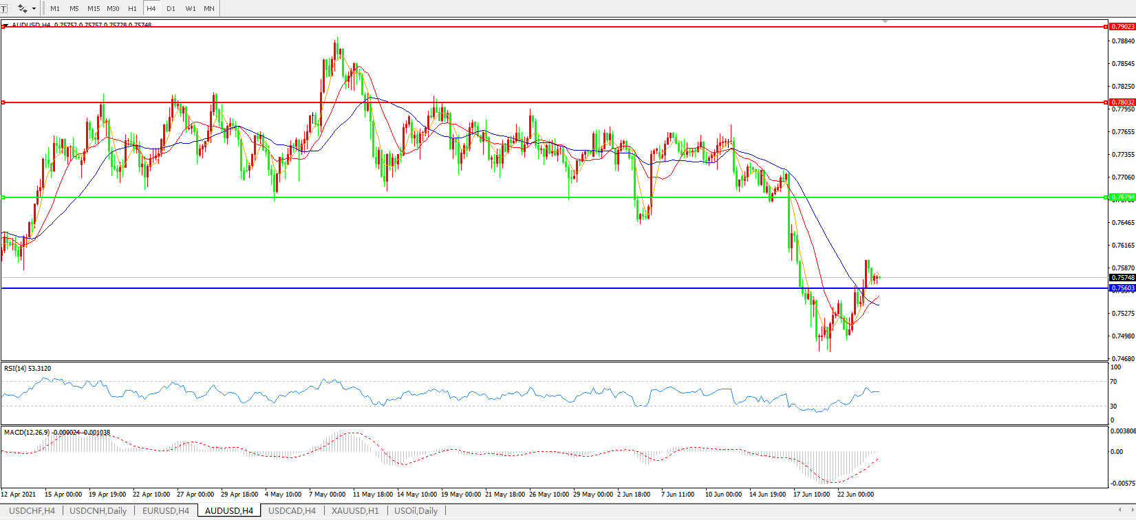 AUDUSD    4小时图: