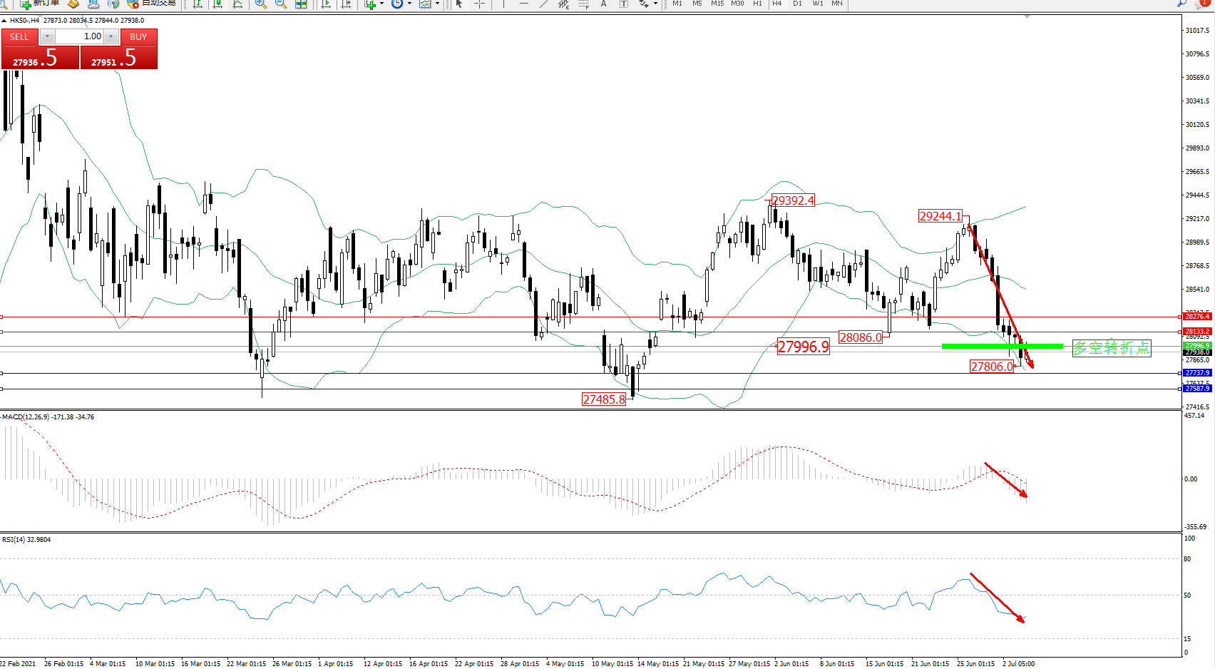 交易策略:27996下方看跌,目标27737、27587
