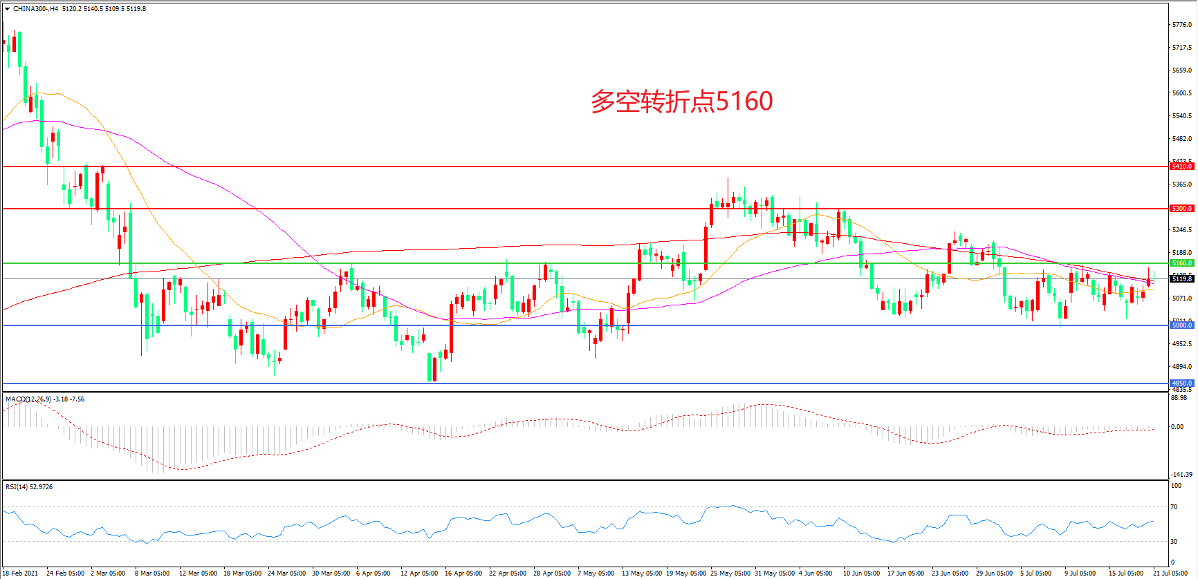 多空转折点:5160.00
