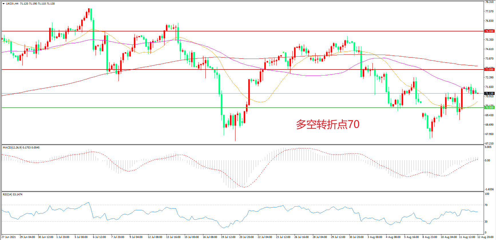 交易策略:在70.00之上看涨,目标73.00               76.00
