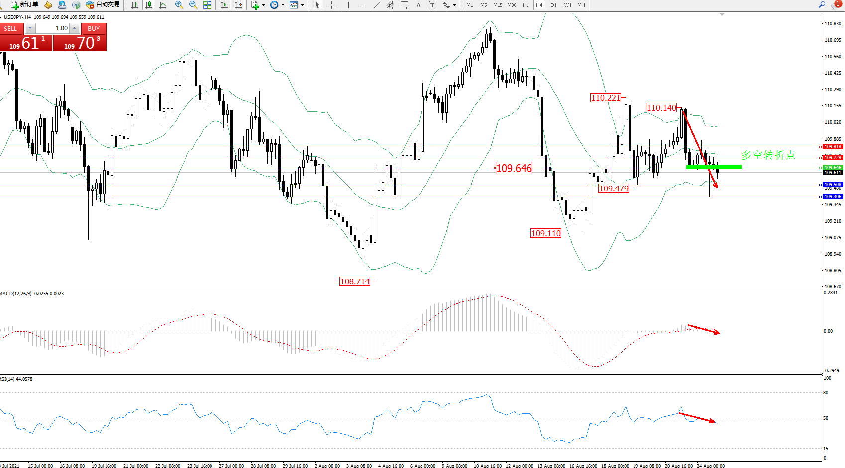 多空转折点:109.646