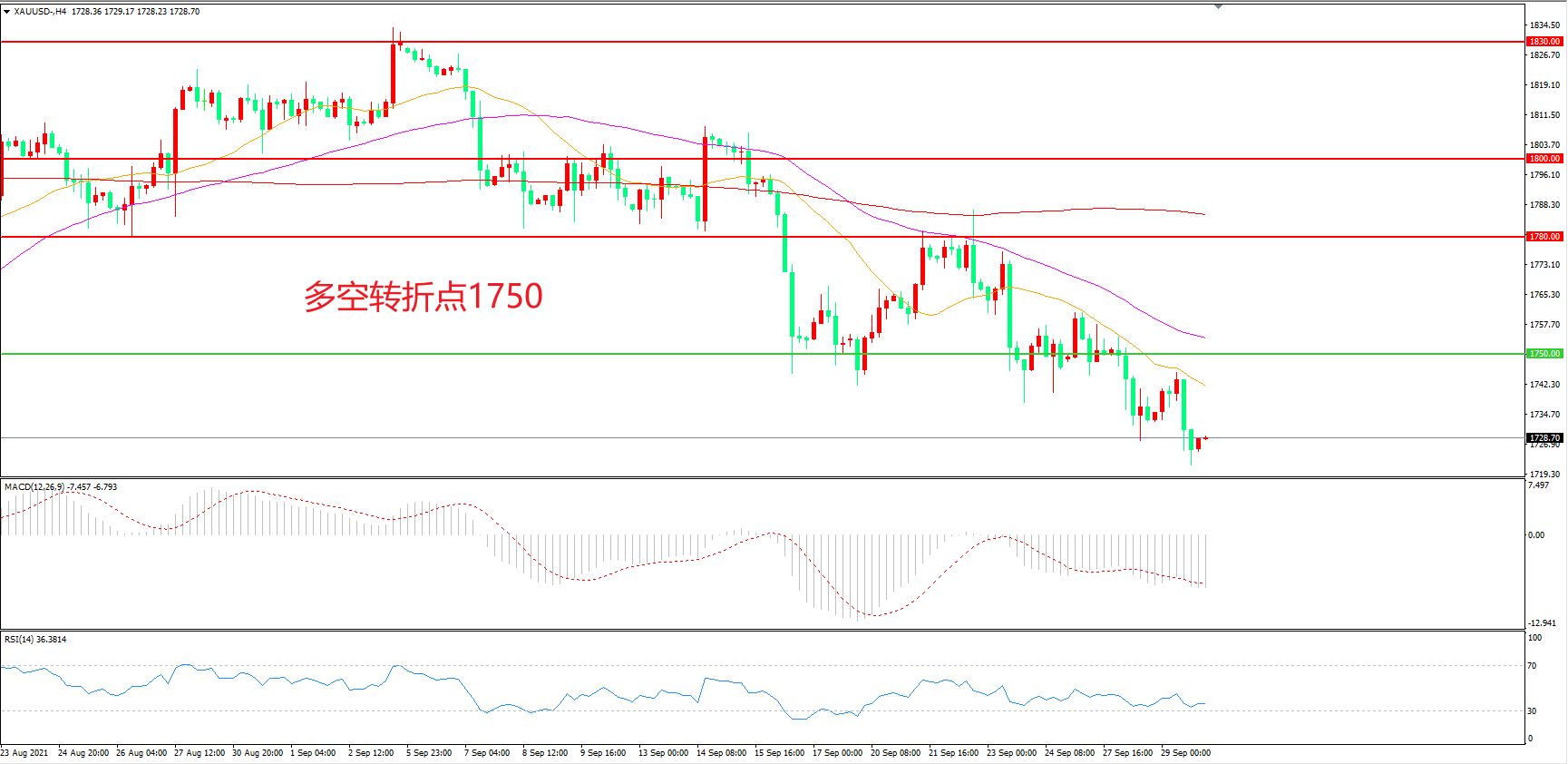 多空转折点:1750.00