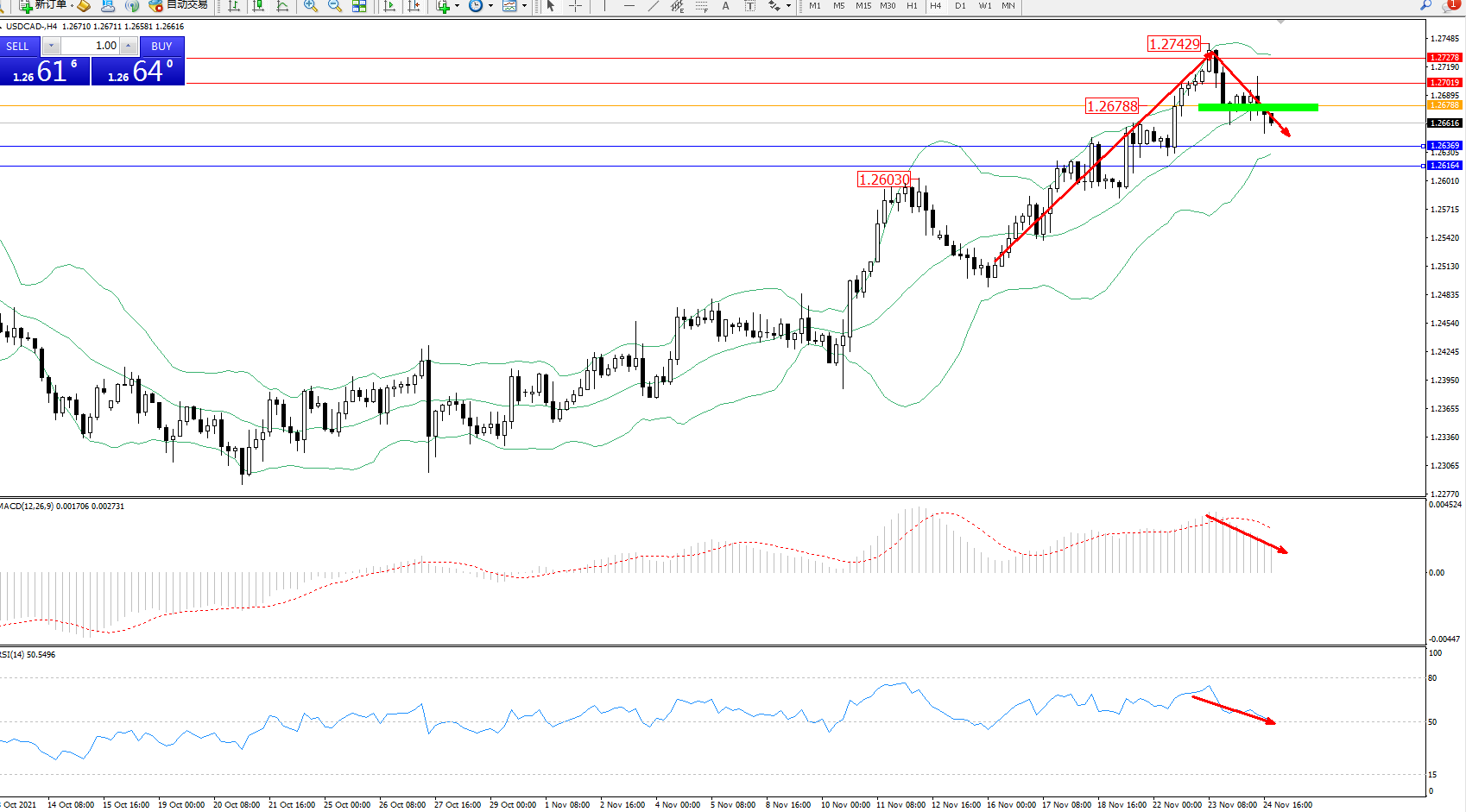 美元加元USDCAD——4小时K线图显示: