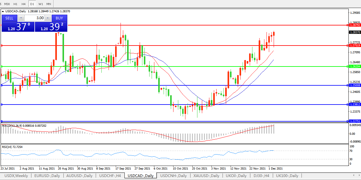美元兑加元USDCAD 日线图: