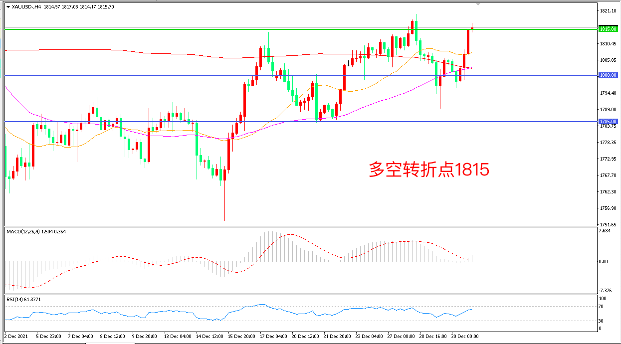 交易策略:在1815.00之上看涨,目标1830.00 1845.00
