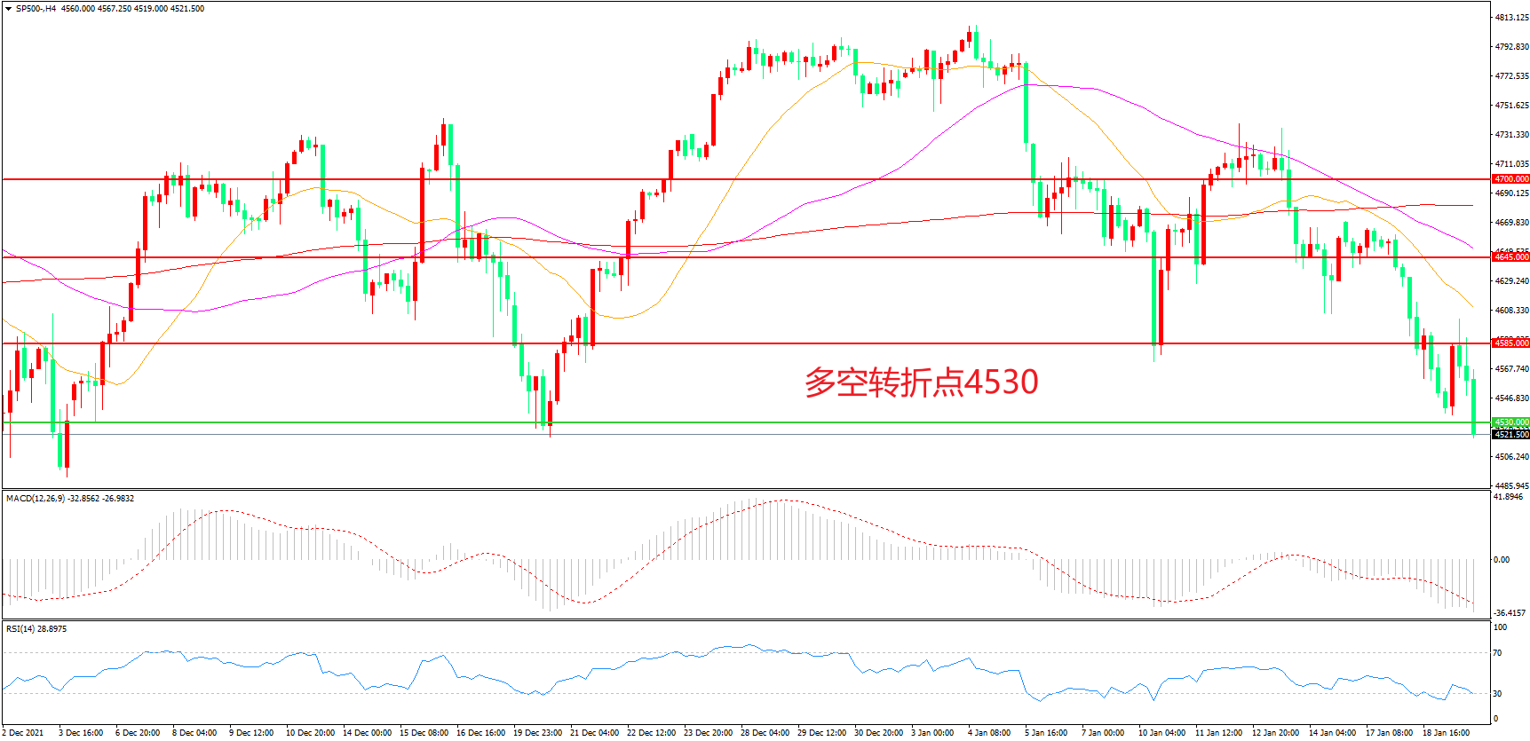 交易策略:在4530.00之下看跌,目标4470.00        4400.00