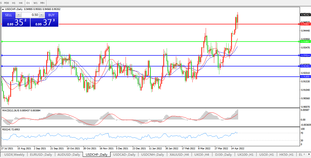 FOMC适宜加快行动步伐,美元兑瑞郎直线拉升