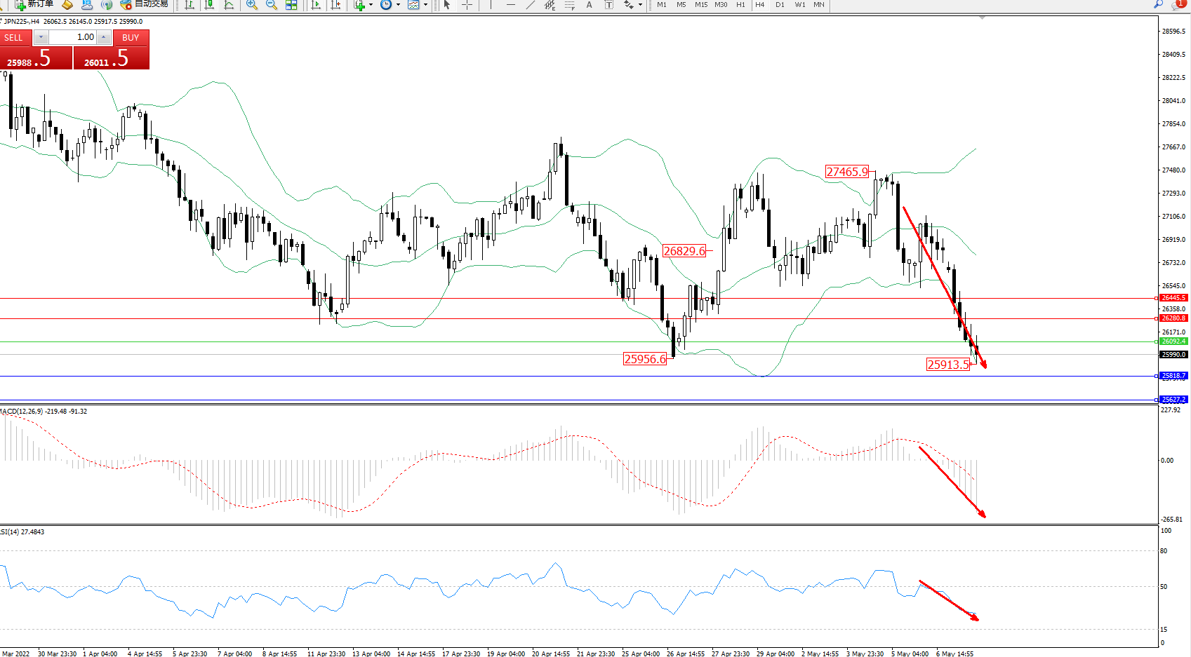 日经指数JPN225——4小时K线图显示: