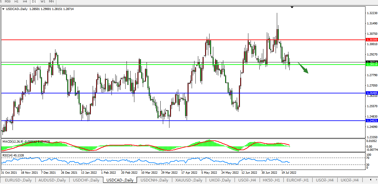 USDCAD:1.2850支撑反复测试