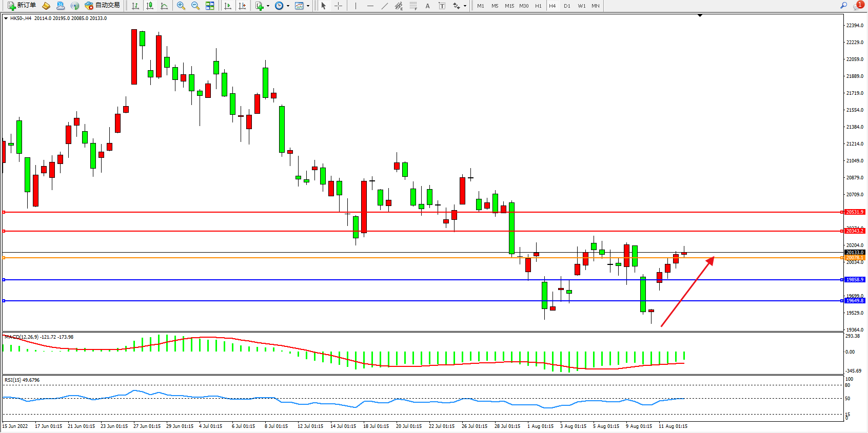 恒指HK50 4小时图