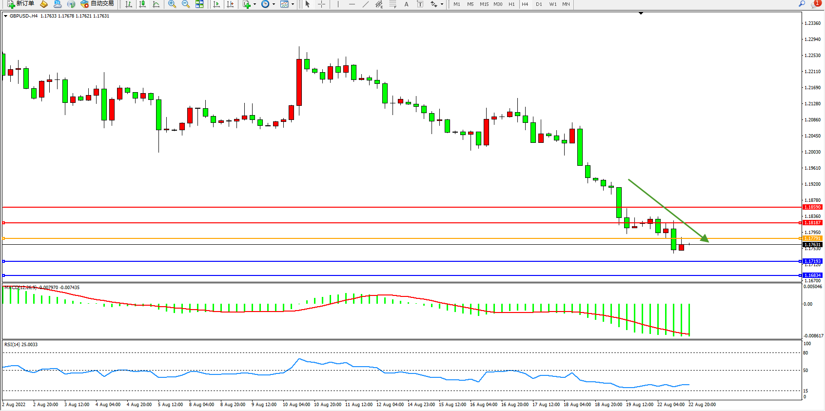 英镑美元GBPUSD ——4小时K线图显示:
