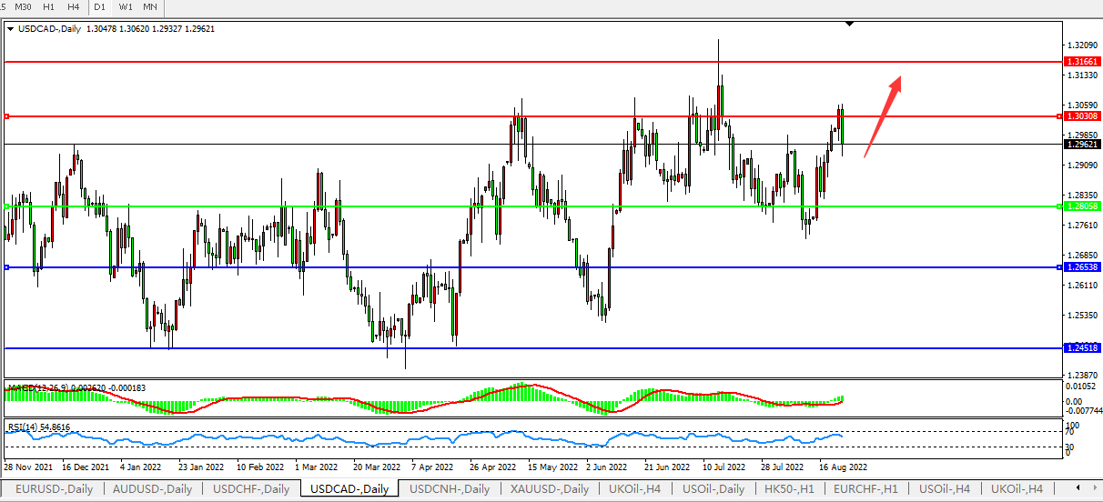 美元兑加元USDCAD  日线图: