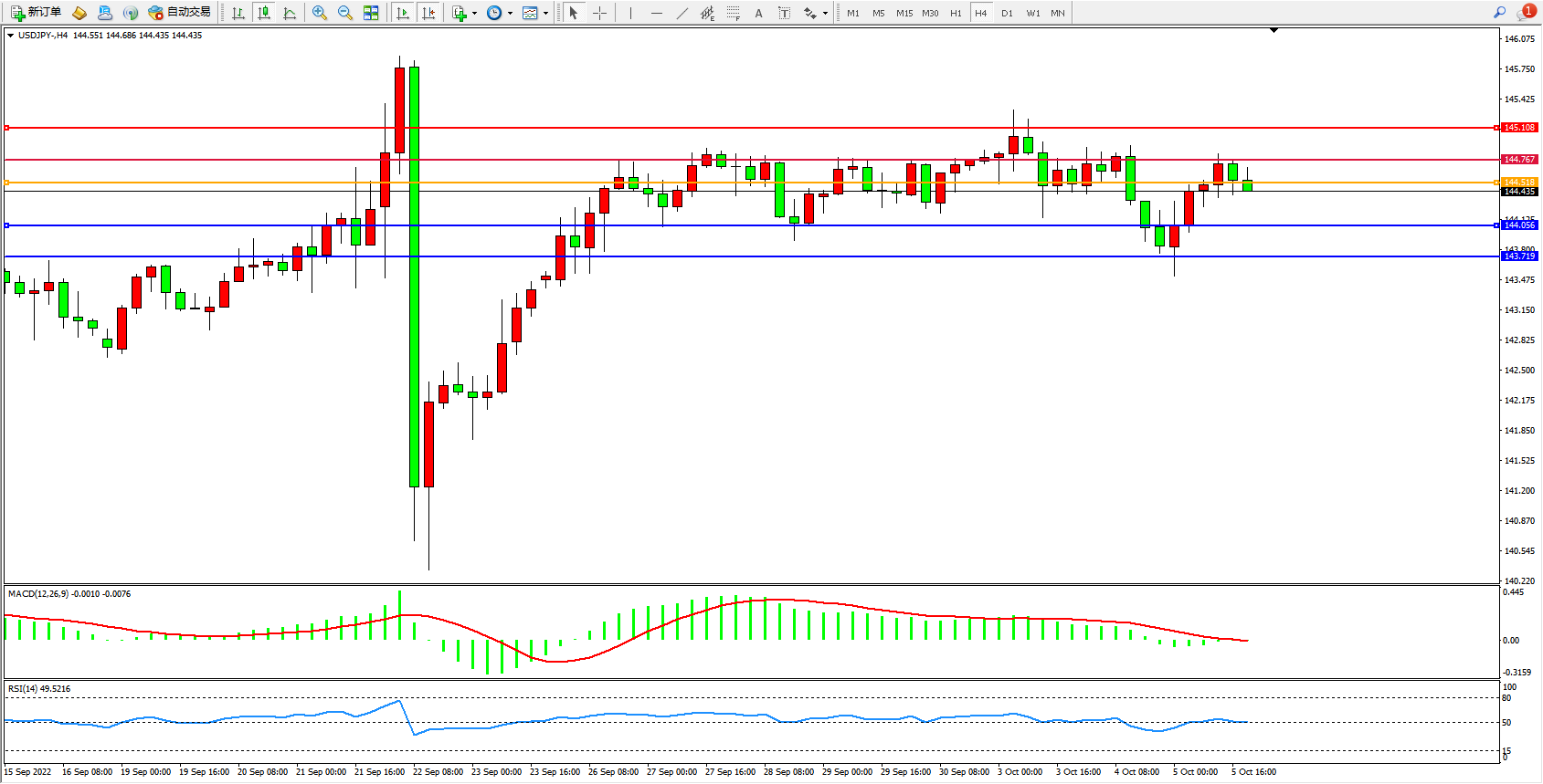 美元日圆USDJPY——4小时K线图显示:
