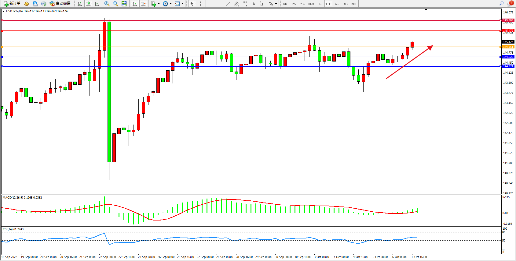 交易策略:144.951上方看涨,目标145.472、145.806