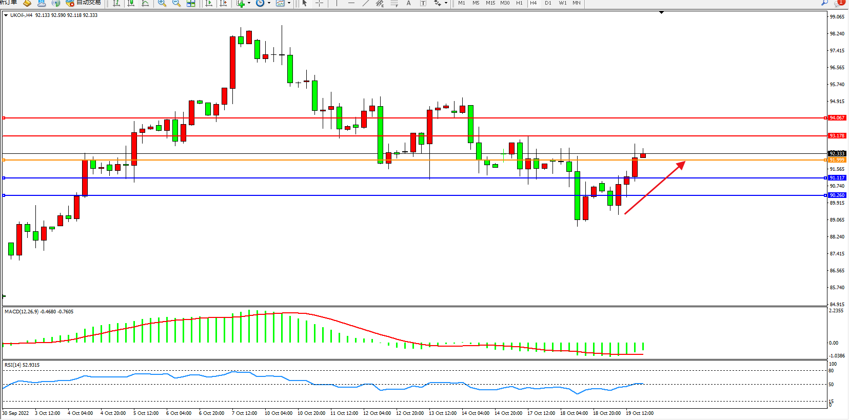 布油UKOil——4小时K线图显示: