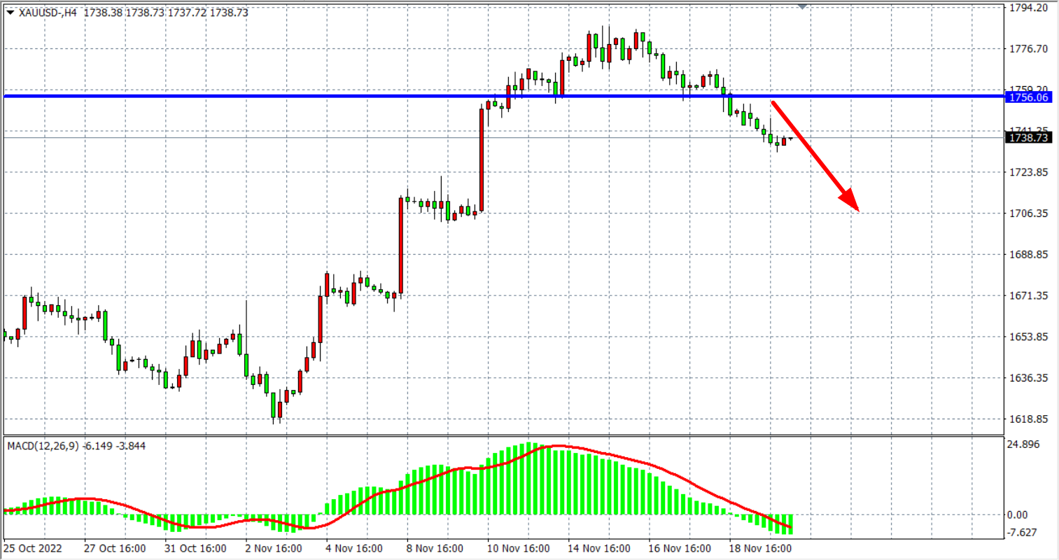 交易策略:在1756.00 之下看跌,目标1730.00 1715.00