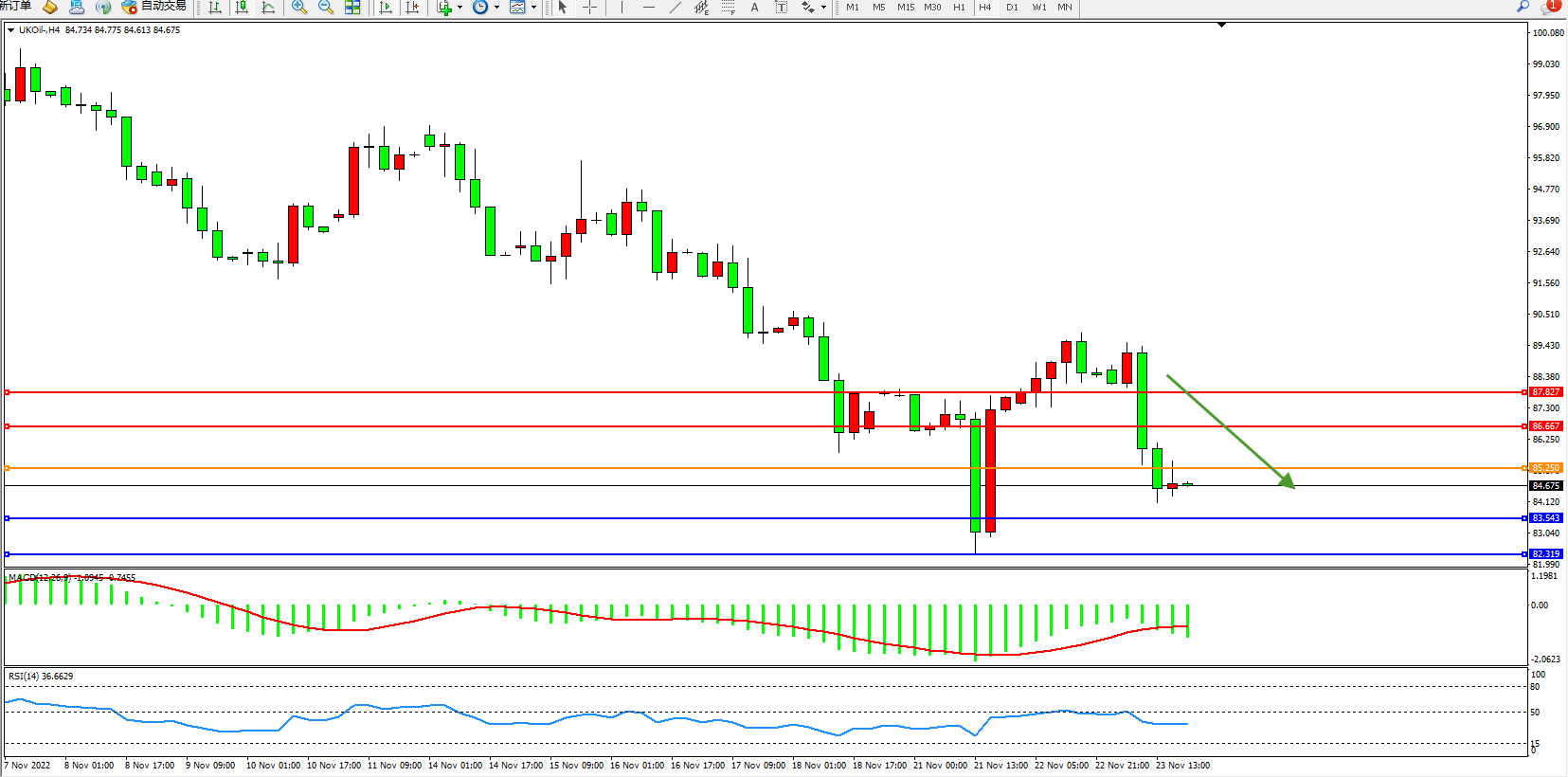 布油UKOil——4小时K线图显示:
