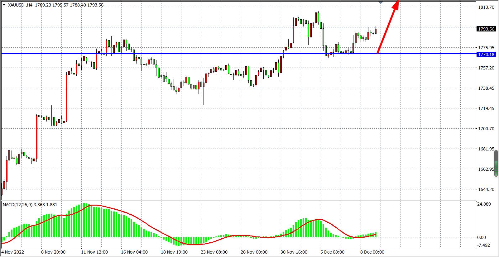 交易策略:在1770.00之上看涨,目标1805.00         1820.00
