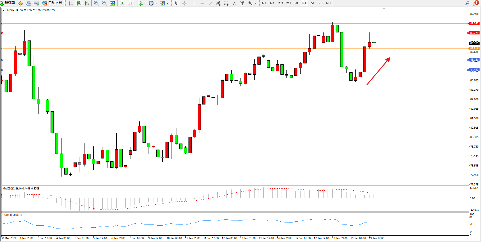 布油UKOil——4小时K线图显示: