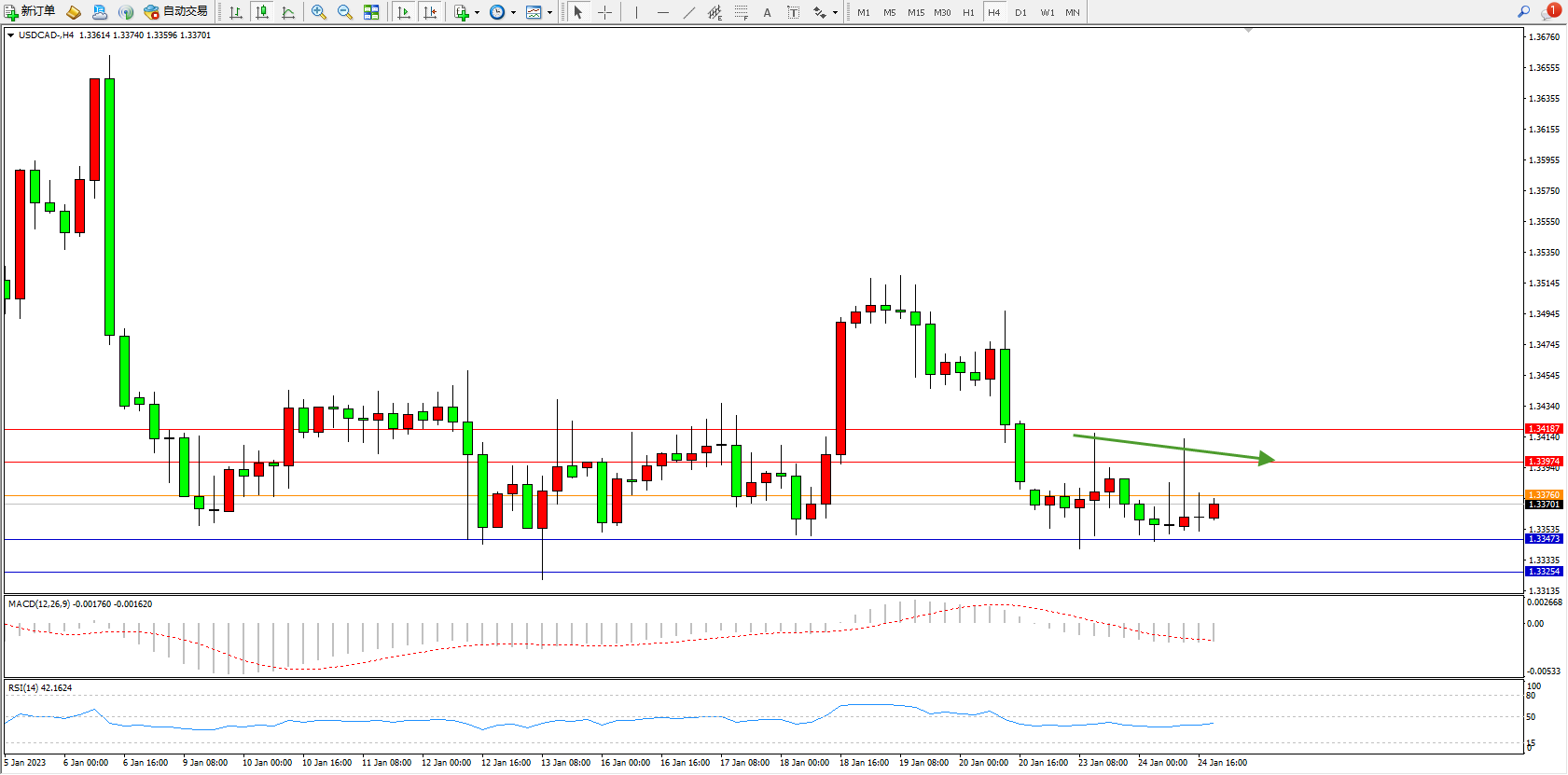 美元加元USDCAD——4小时K线图显示: