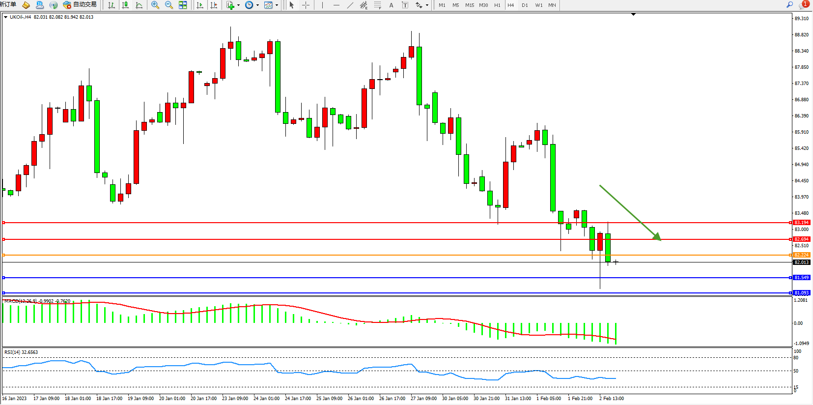布油UKOil——4小时K线图显示: