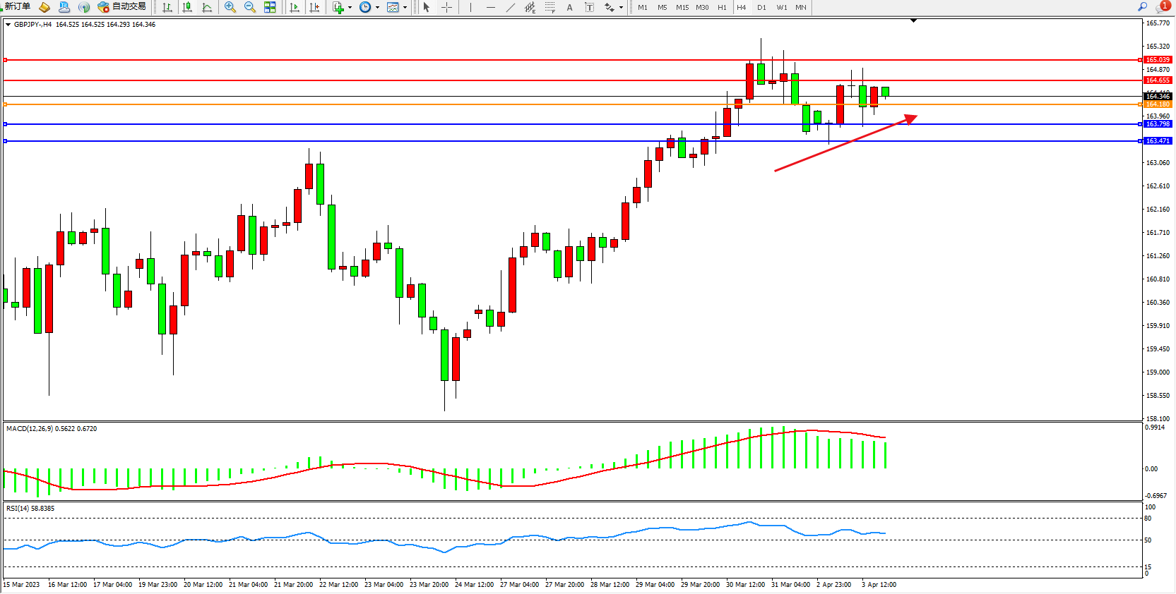 交易策略:164.180上方看涨,目标164.655  165.039