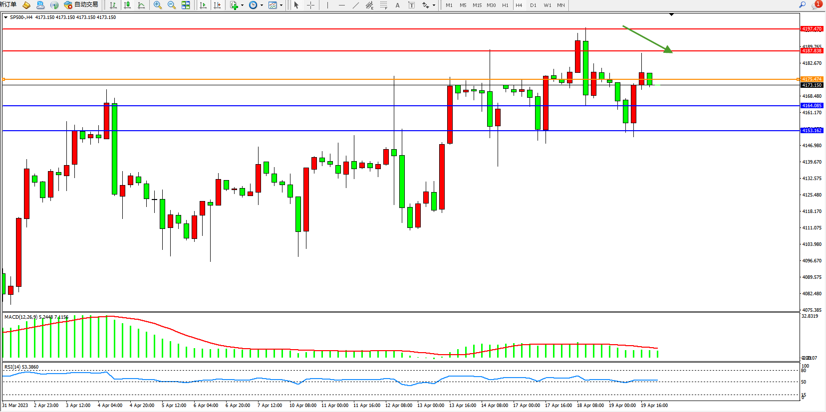 标普SP500——4小时K线图显示: