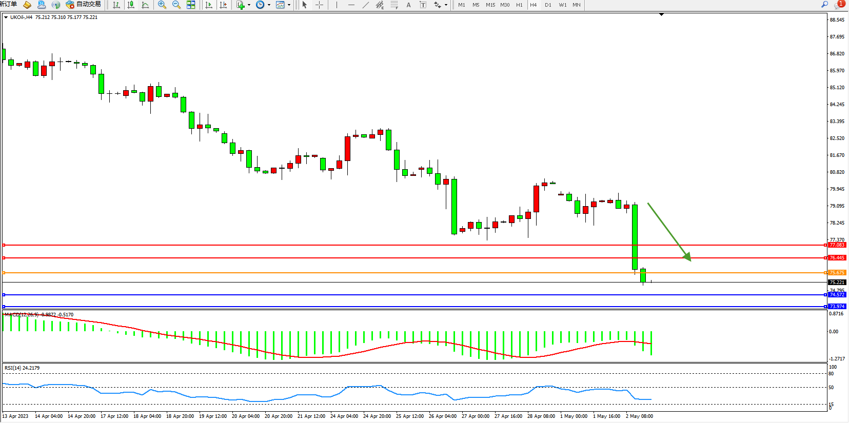 阻力位:76.445 77.083