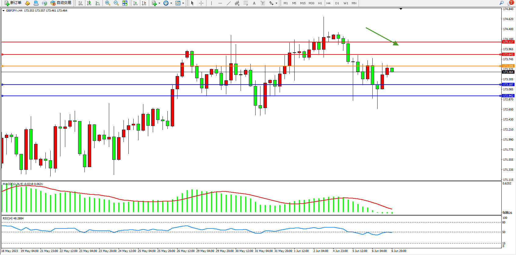 阻力位:173.843  174.117
