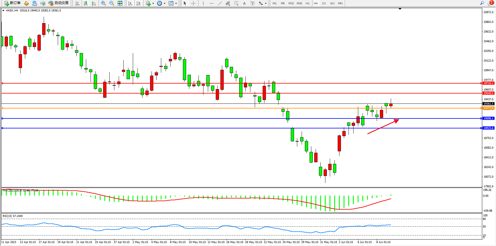 恒指HK50 4小时图