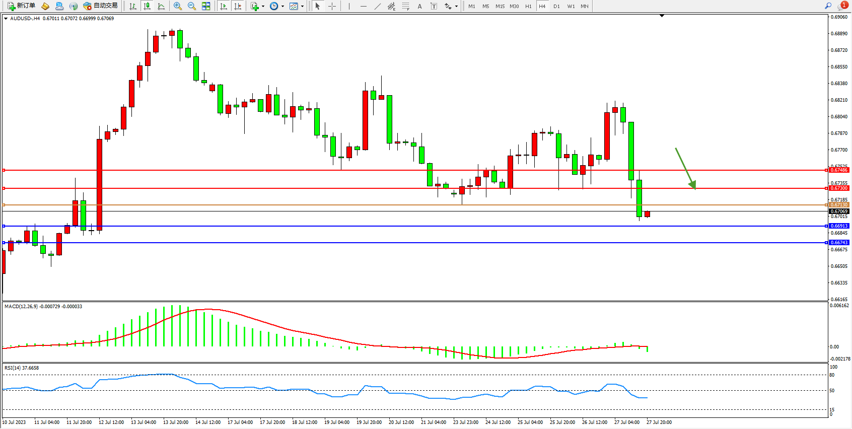 支撑位:0.66913 0.66743