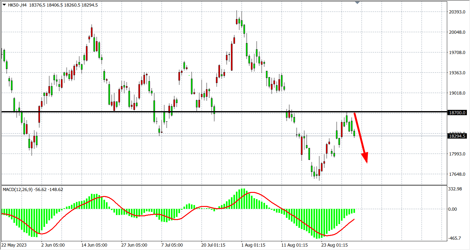 4小时图看,恒指再度走弱,反弹18600继续受阻,MACD量能于零轴上方有所缩减,支撑关注18200-17900附近,阻力关注18700一线。