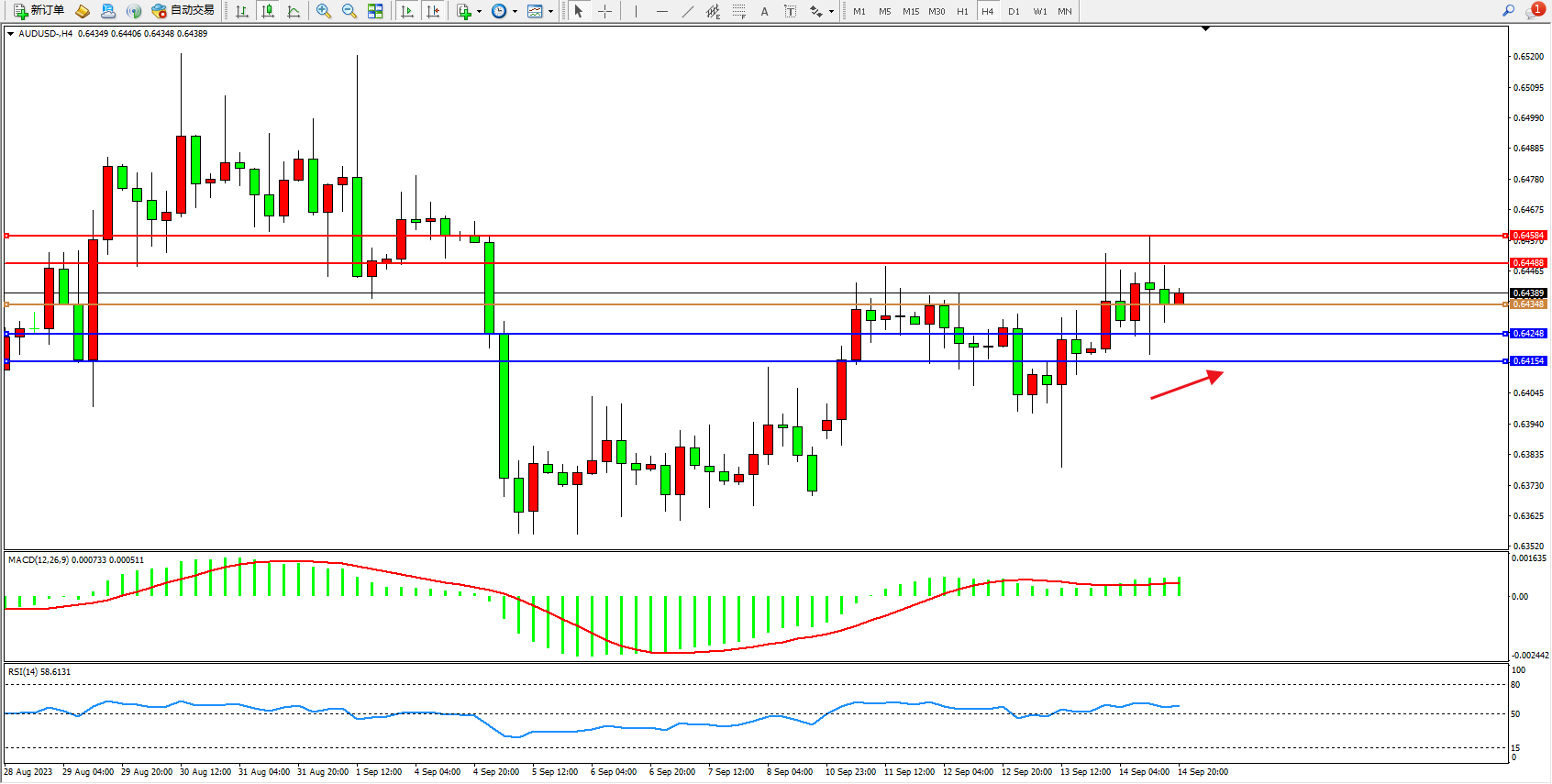 阻力位:0.64488 0.64584