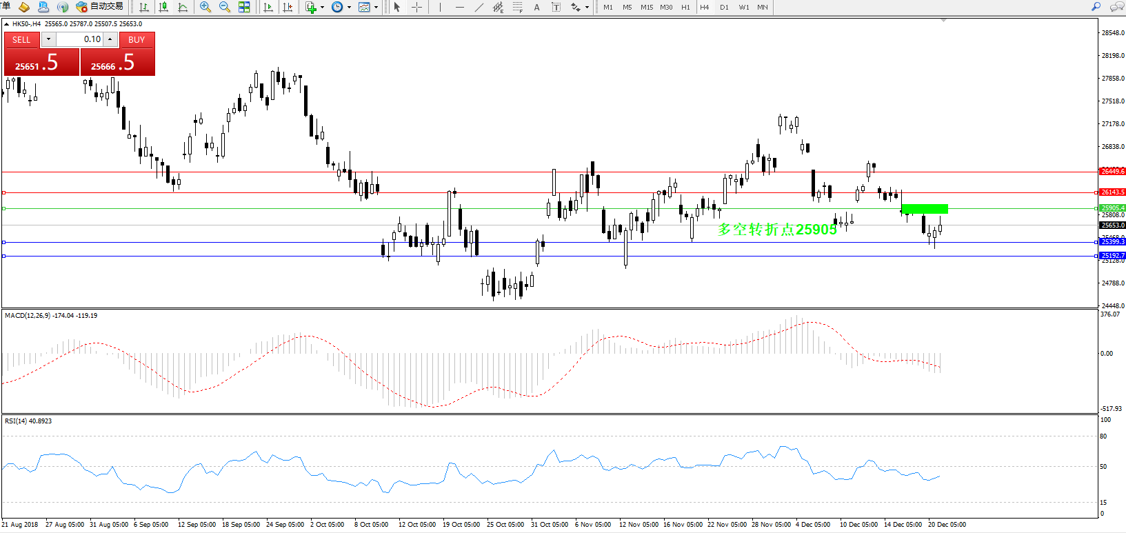 恒指HK50 ——4小时K线图显示:
