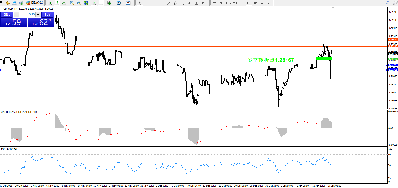 交易策略:1.28167上方看涨,目标1.29139、1.29634