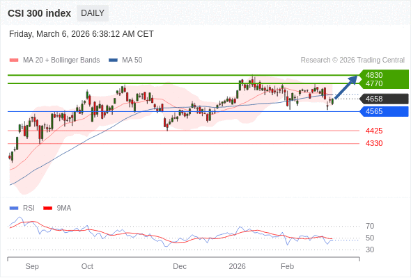 沪深300指数 短线: 看涨。