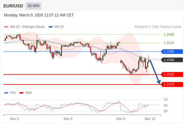 在 1.1585 之下,看跌,目标价位为 1.1505 ,然后为 1.1470 。