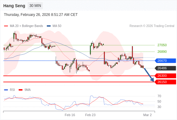 在 26670 之下,看跌,目标价位为 26300 ,然后为 26150 。