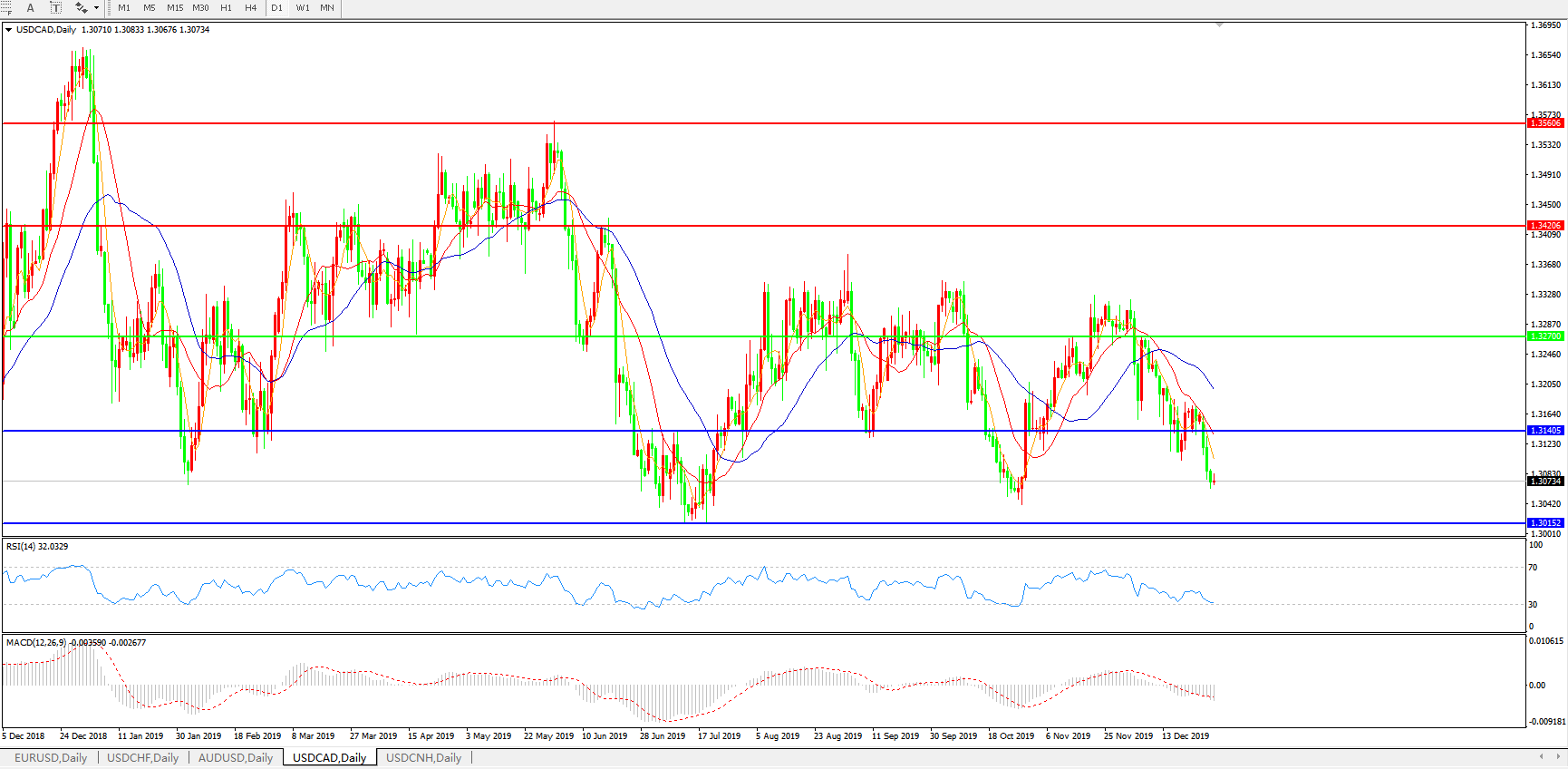 美元兑加元USDCAD    日线图: