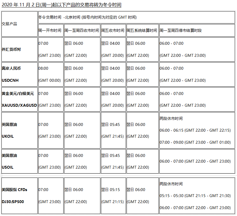 冬令时交易时间调整通知